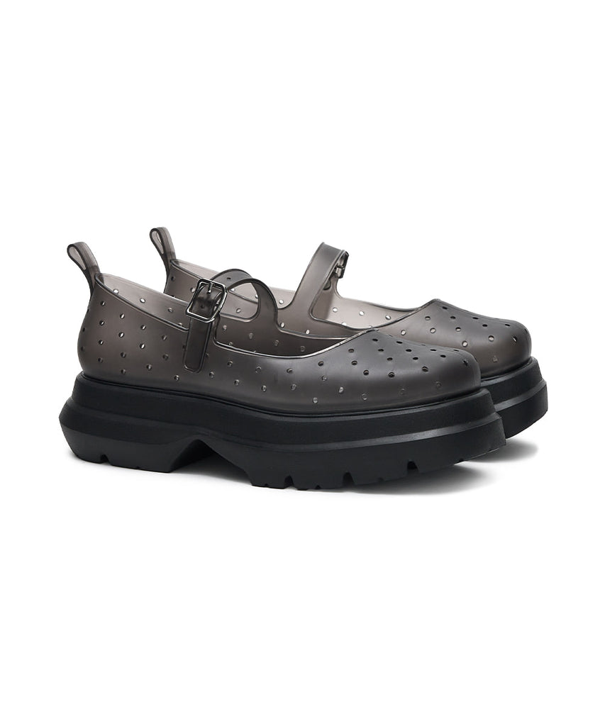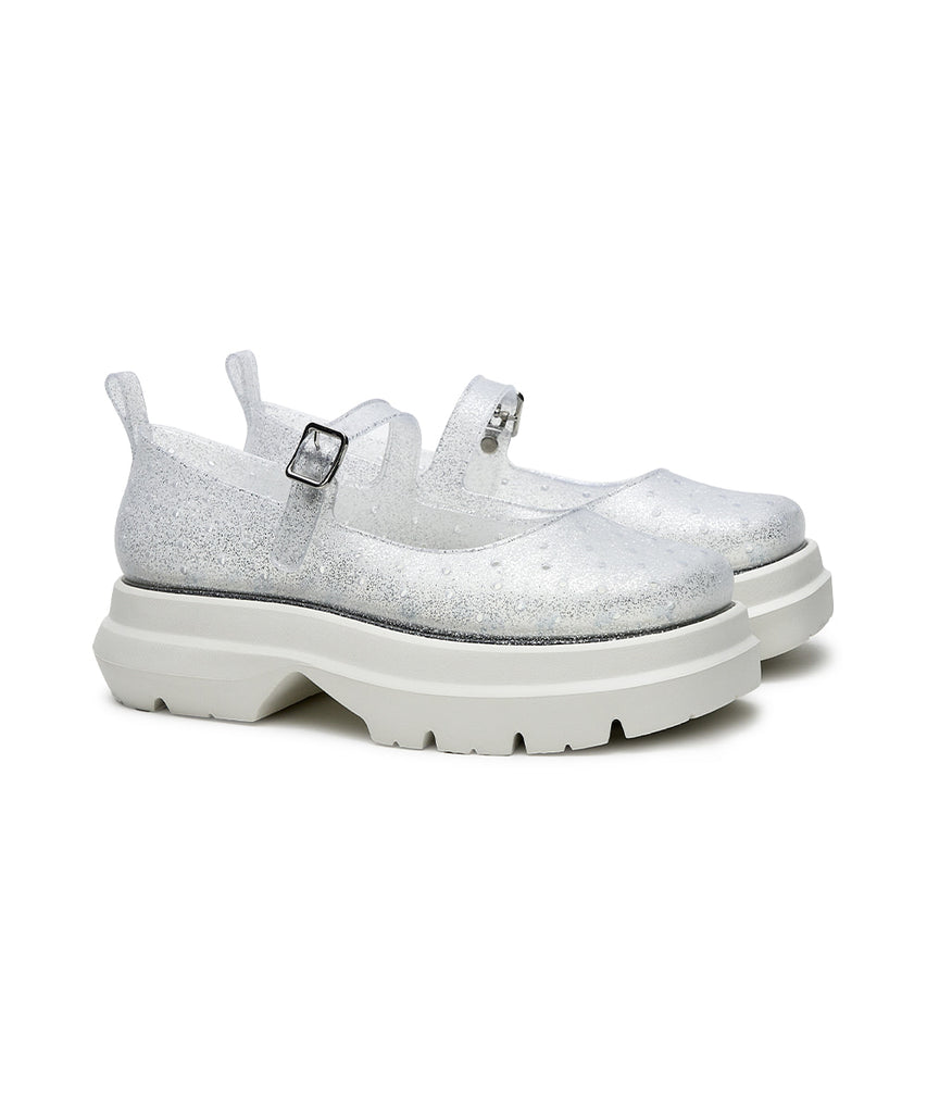 Glair Flatform Square Maryjane Clear Glitter Silver