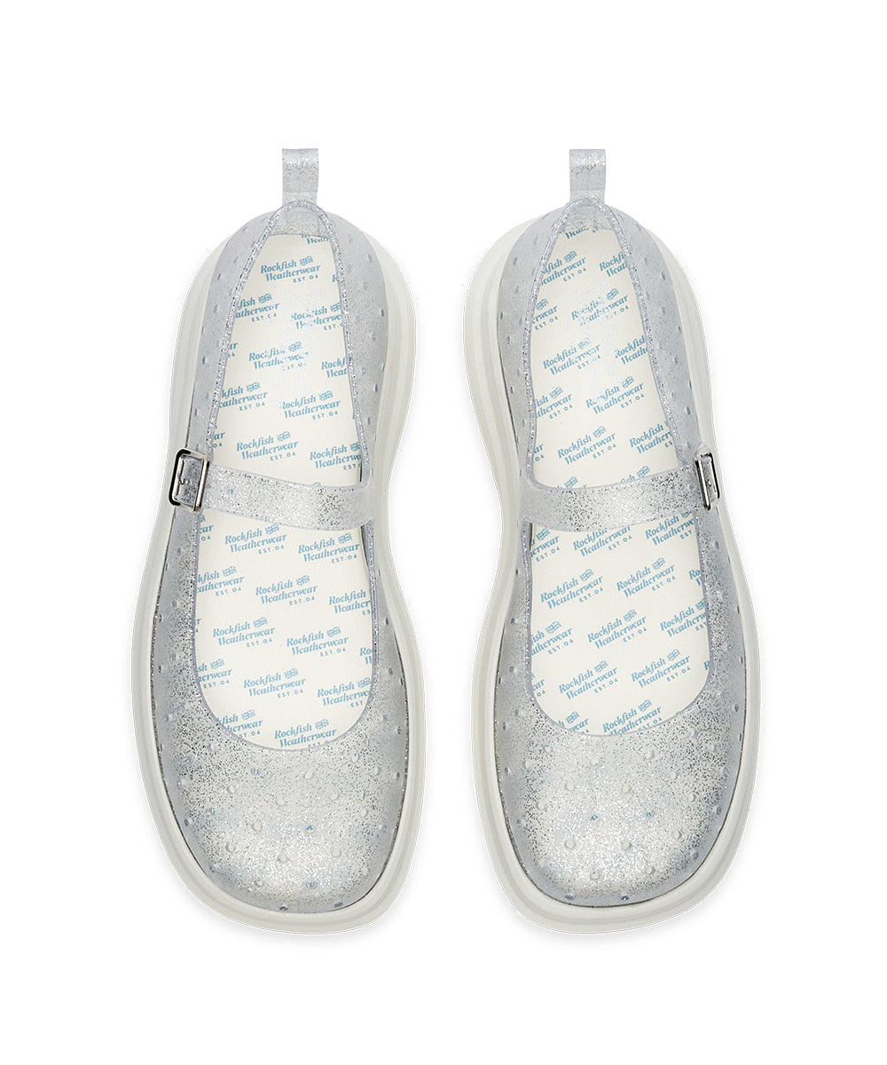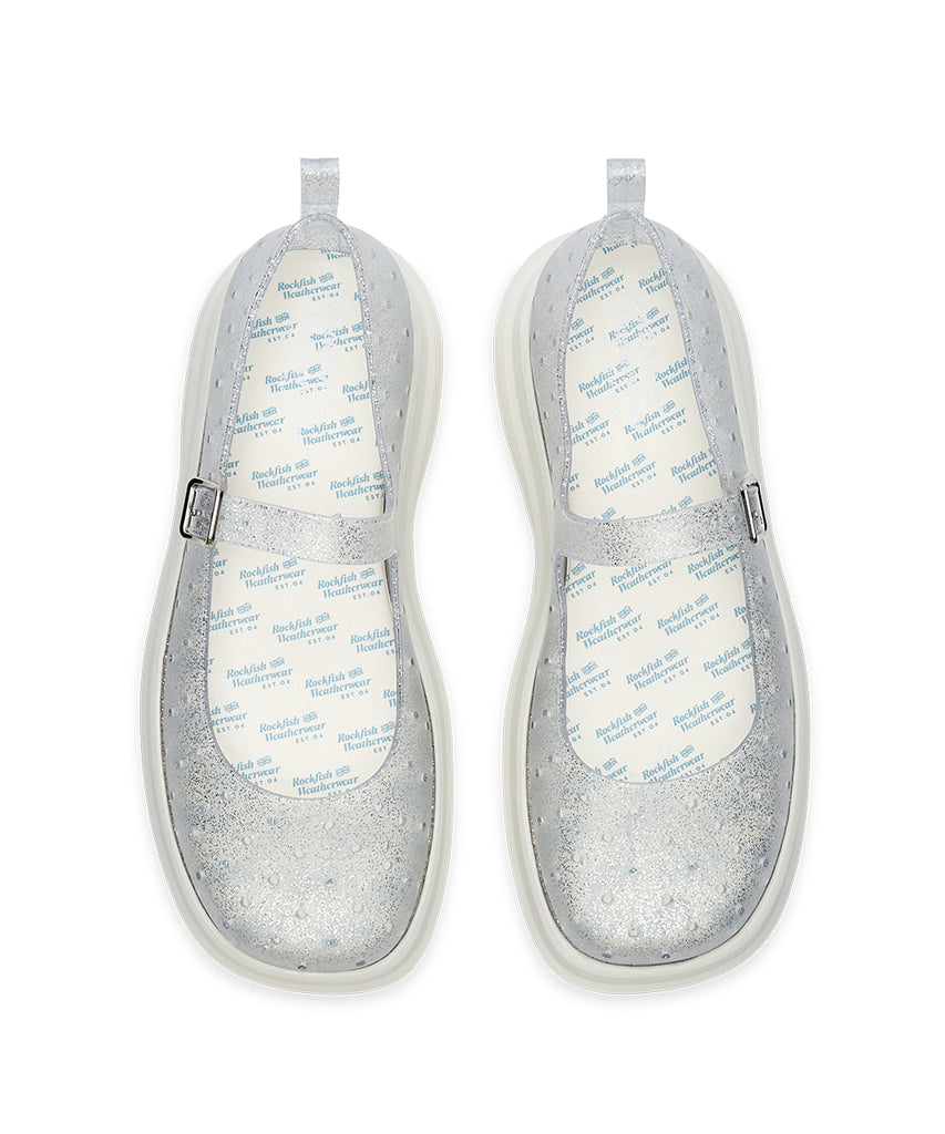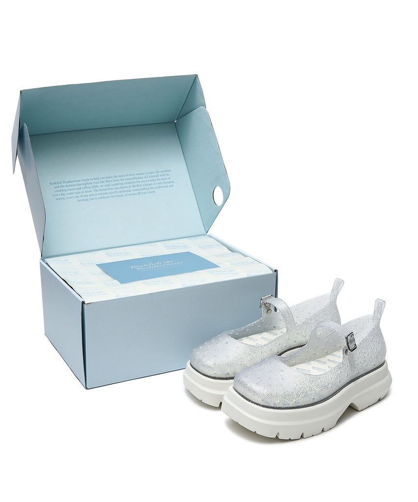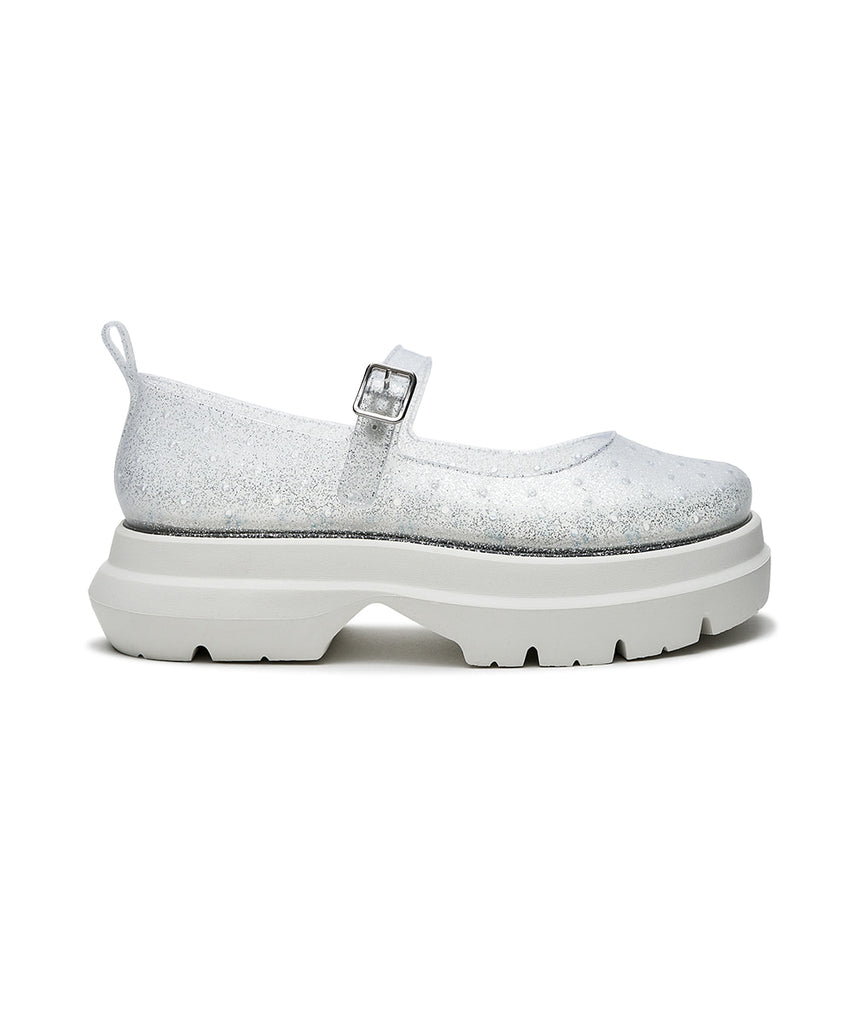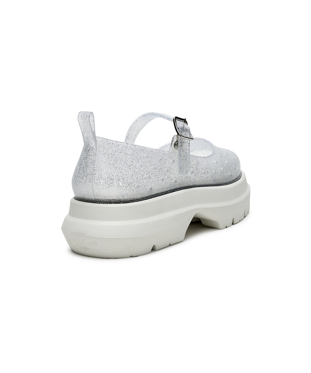 Glair Flatform Square Maryjane Clear Glitter Silver