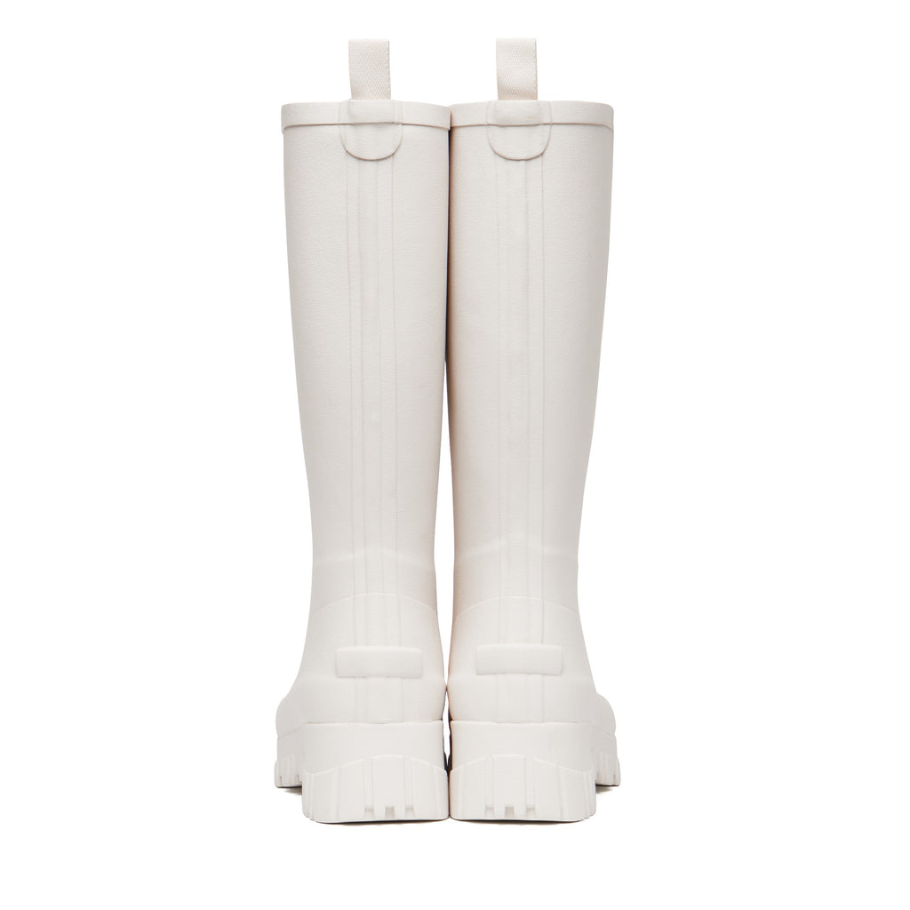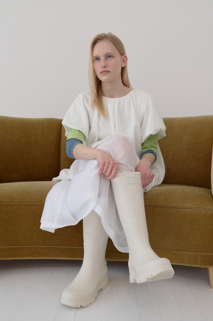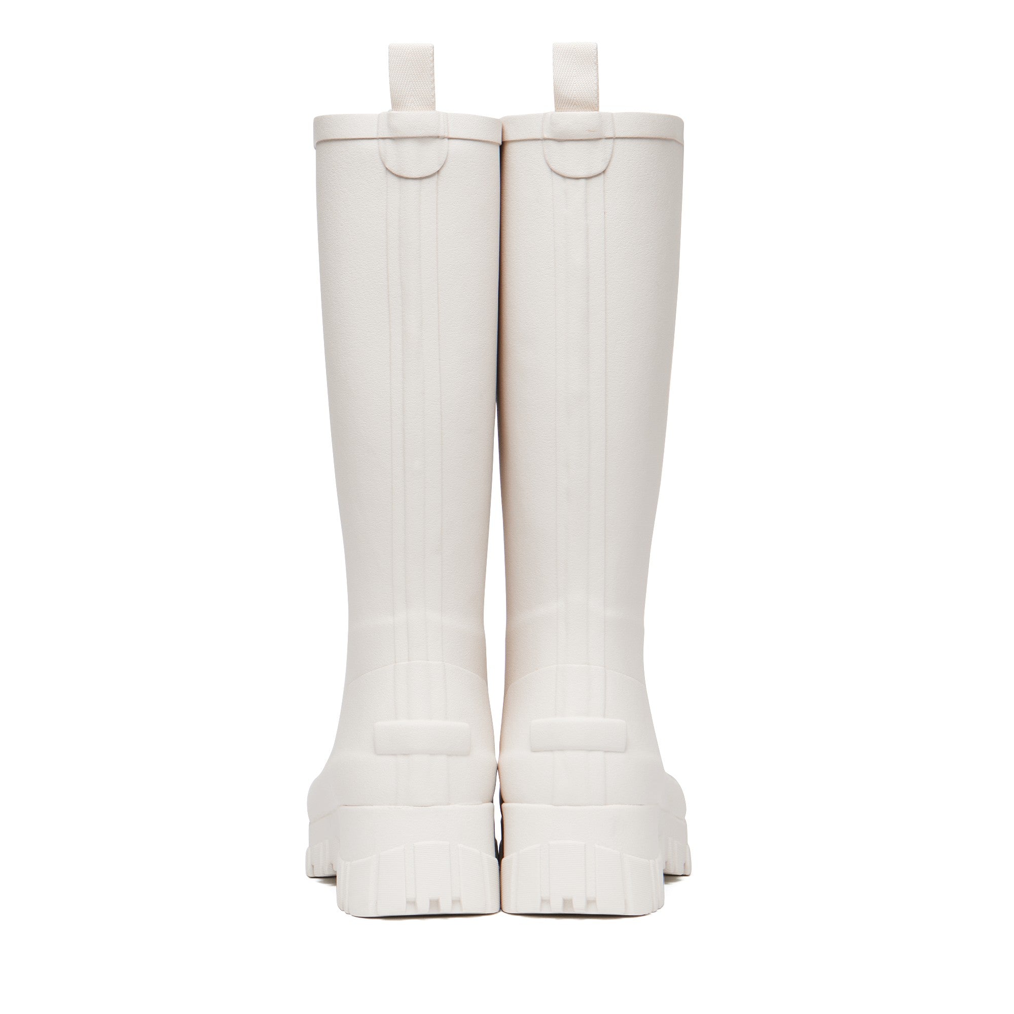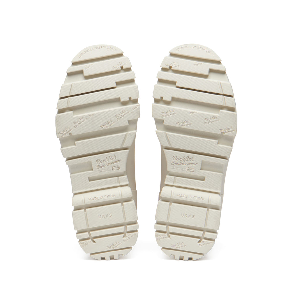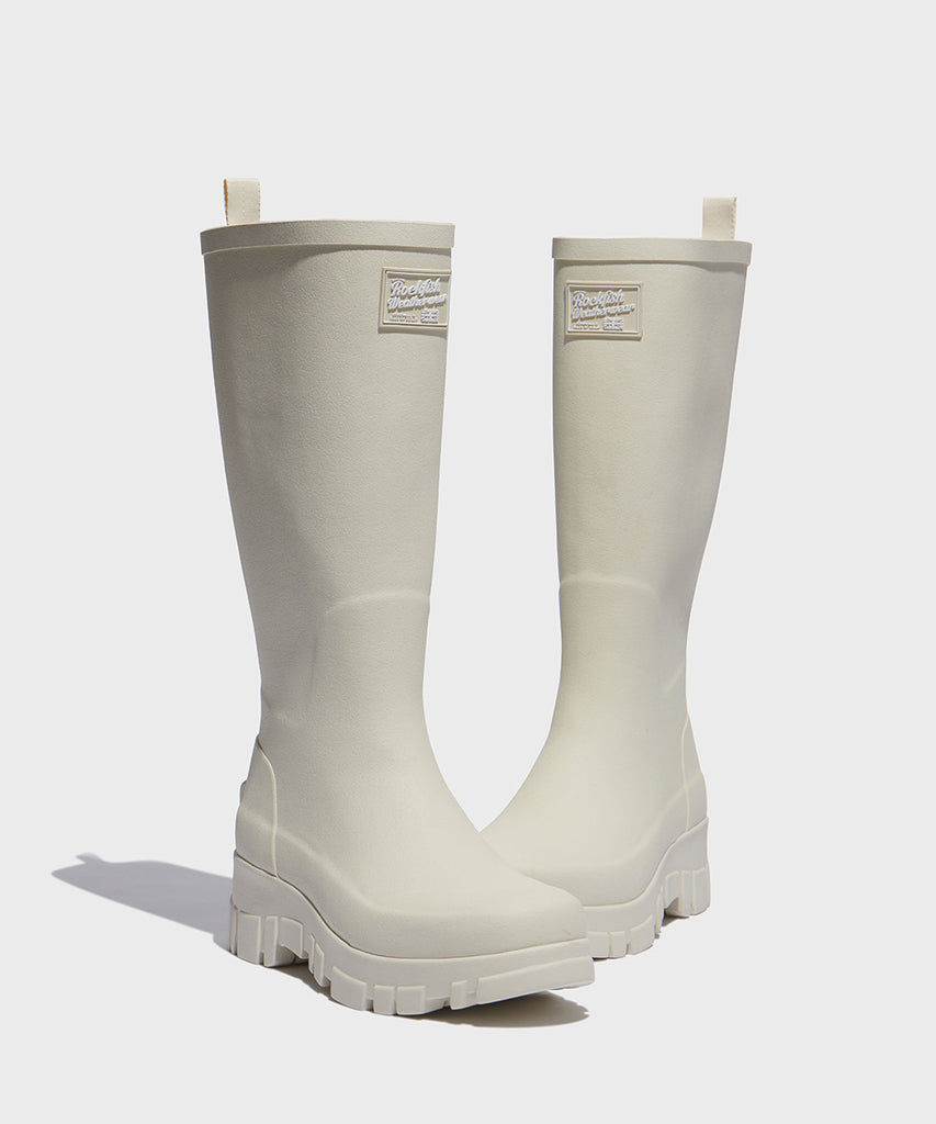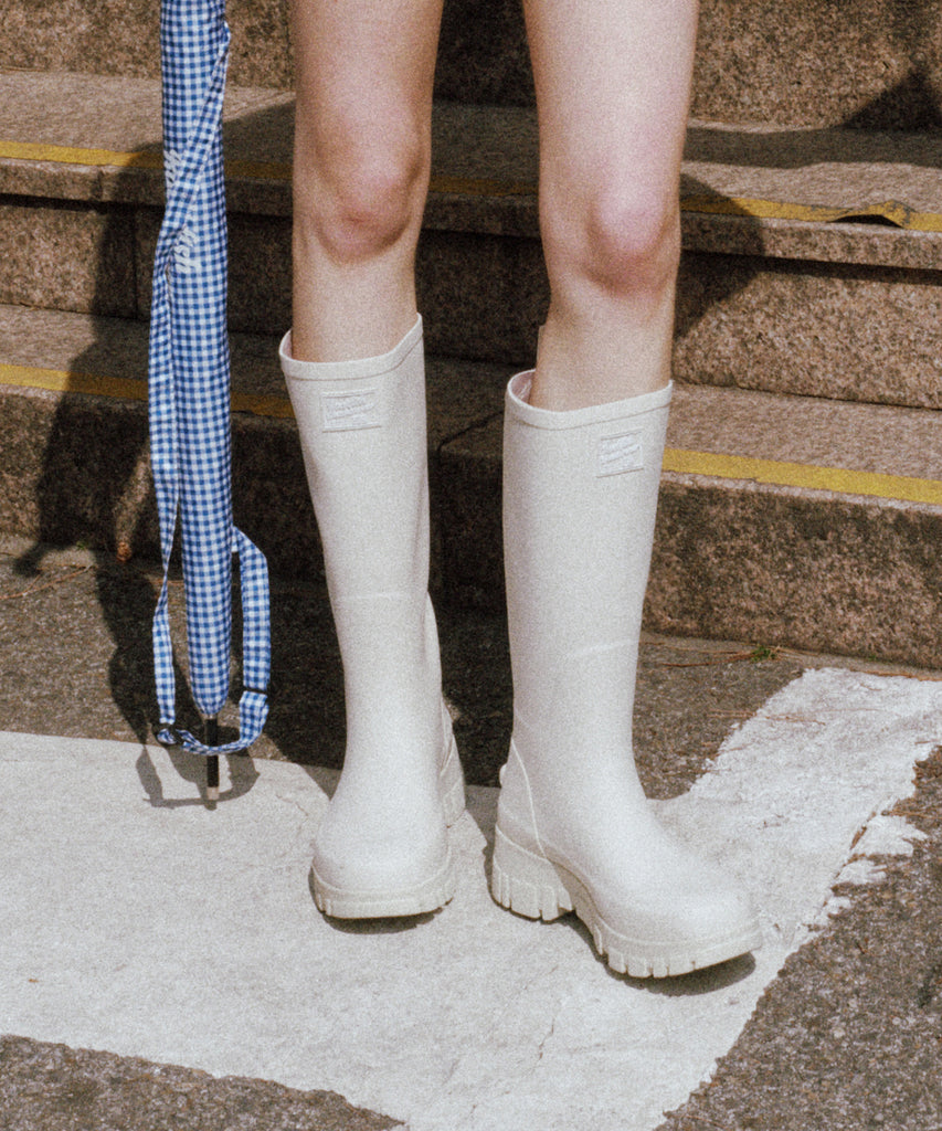 Our Flatform Rainboots enhance the leg line with a platform outsole and sleek ankle boot shape. Crafted from a premium natural rubber blend with a matte texture finish, it delivers both durability and a refined look. Finished with a tonal logo patch for subtle detailing.