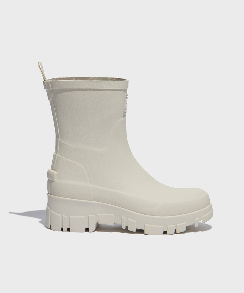 Our Flatform Rainboots enhance the leg line with a platform outsole and sleek ankle boot shape. Crafted from a premium natural rubber blend with a matte texture finish, it delivers both durability and a refined look. Finished with a tonal logo patch for subtle detailing.