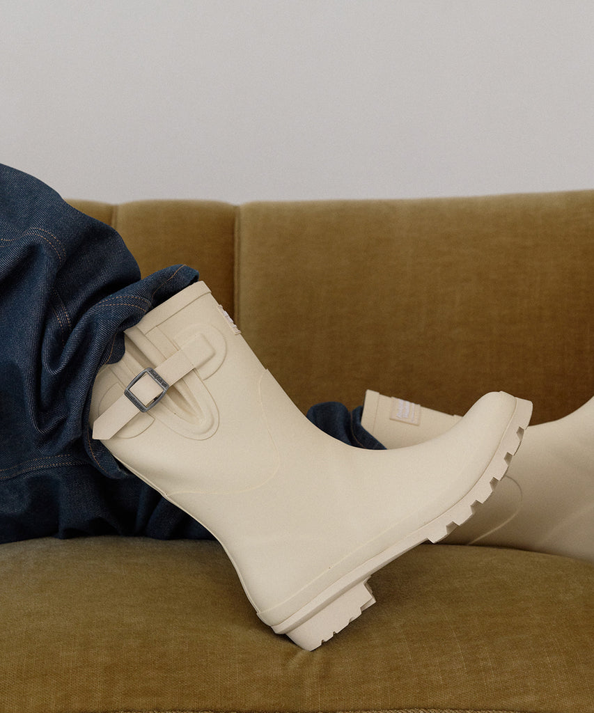 These short rain boots combine sleek style with everyday functionality, featuring a matte finish and subtle side belt accents for a modern touch. Crafted from high-quality natural rubber through a meticulous handmade process, they offer exceptional durability and elasticity. A breathable high-poly insole enhances comfort, making them ideal for all-day wear.