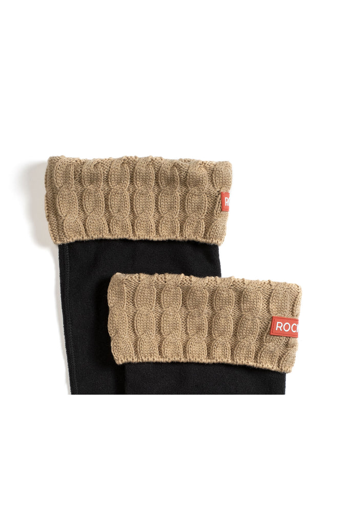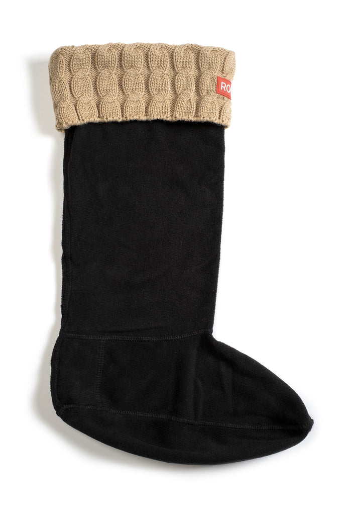 Fleece boot liner. Cable knit cuff, tall boot socks. Knee high