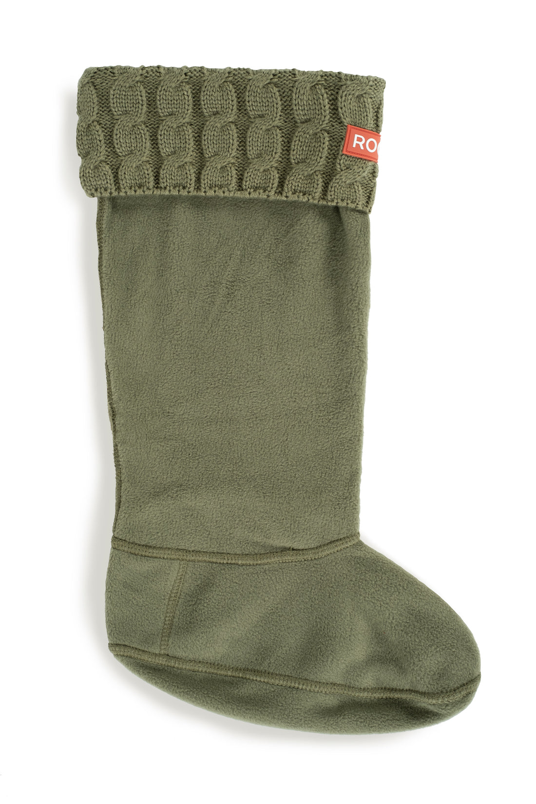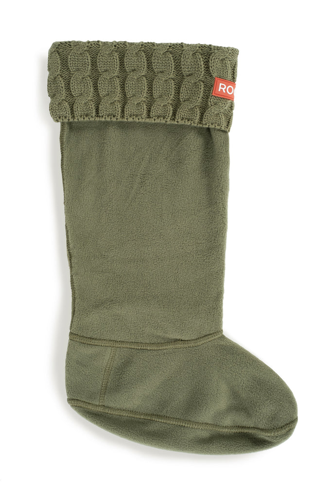 Fleece boot liner. Cable knit cuff, tall boot socks. Knee high