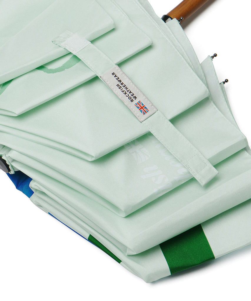 Crafted from waterproof Ponzi fabric, it offers excellent protection from the rain, while the lightweight, corrosion-resistant aluminium shaft and water-resistant wooden handle provide lasting durability and comfort.