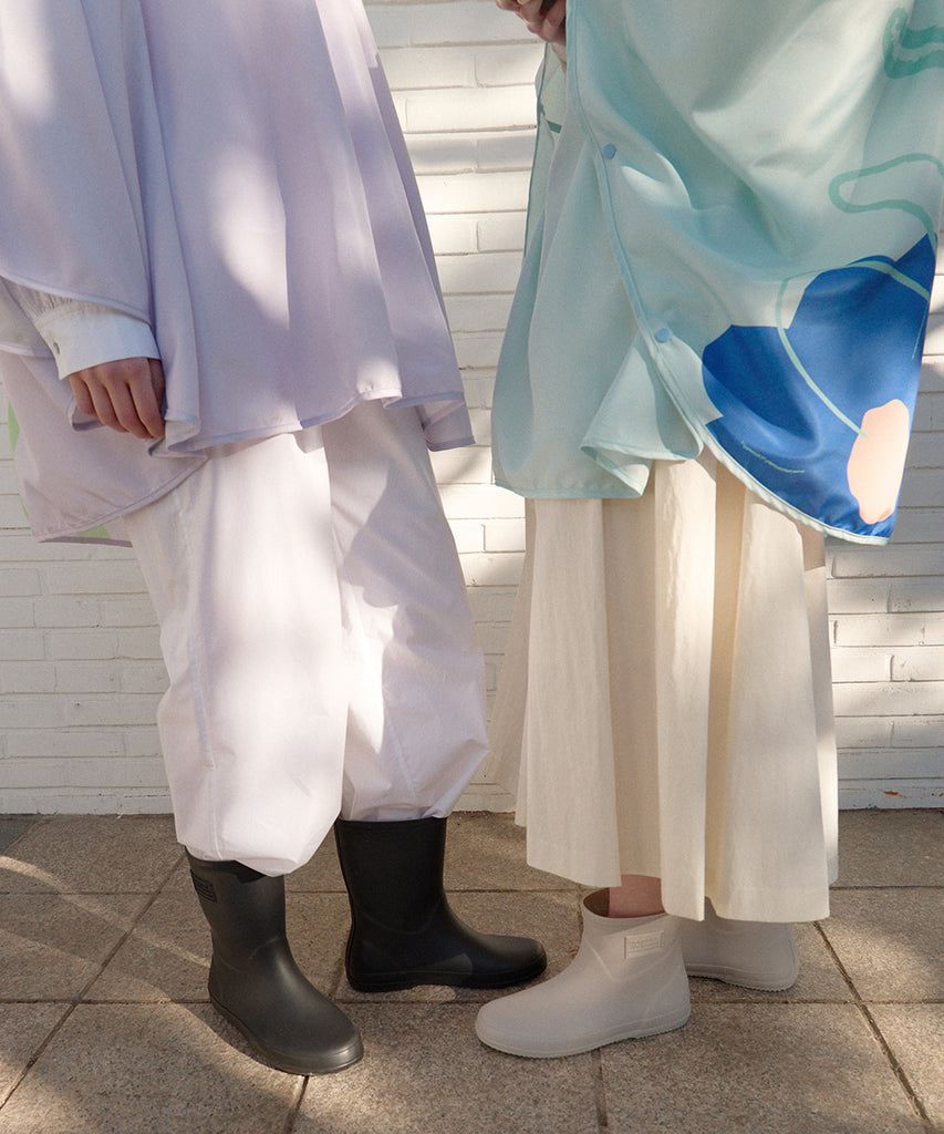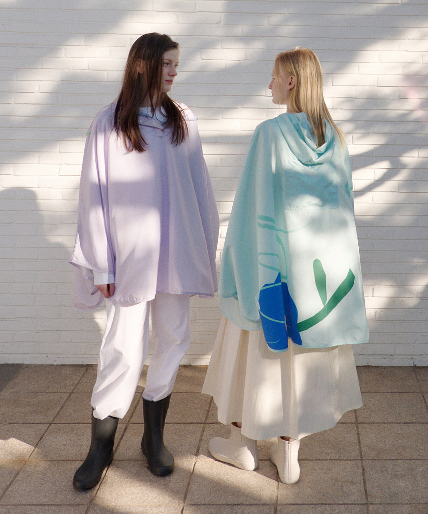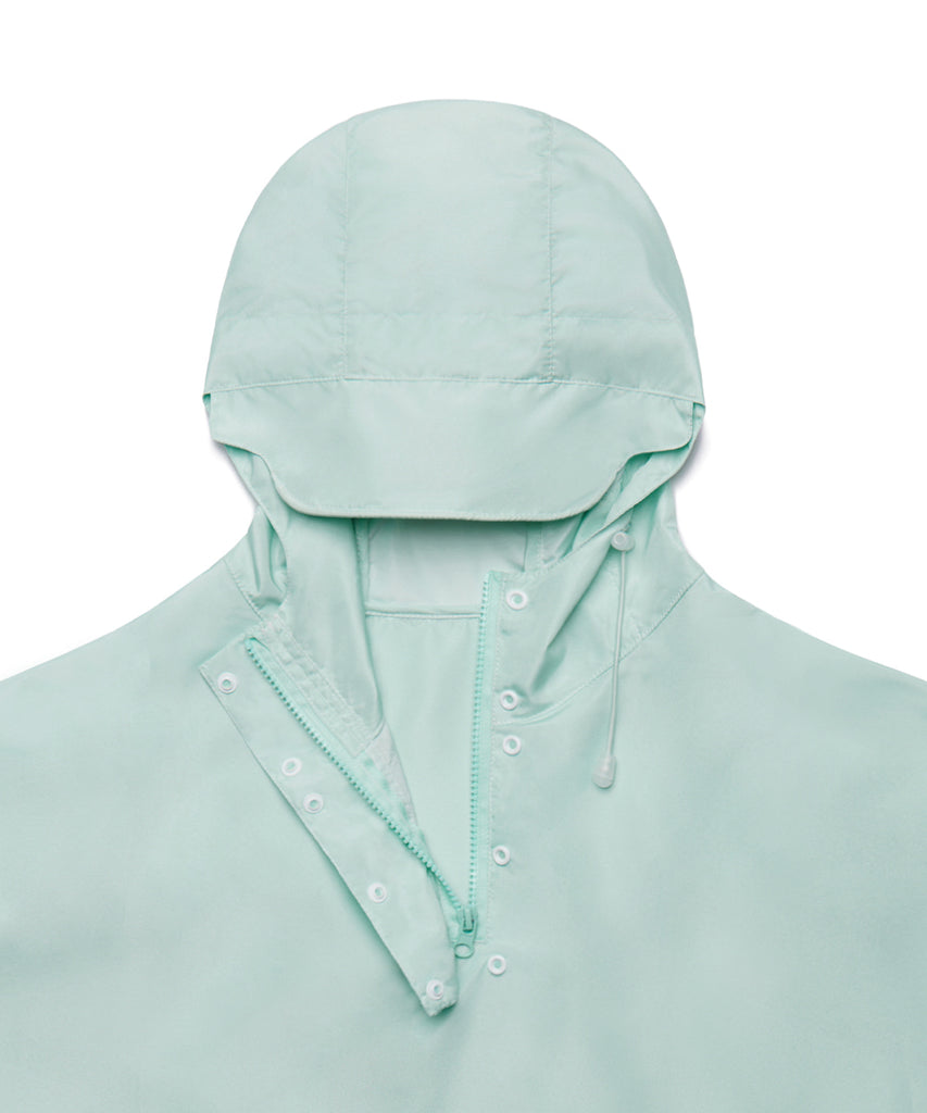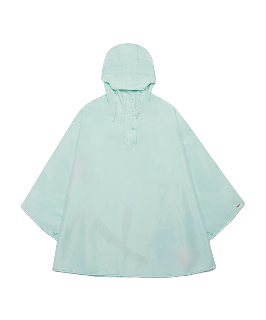 Designed with a generous fit for easy layering, it features snap buttons at the hem and a front zipper for quick, convenient wear. The waterproof coating and hood with a structured brim help keep you protected from the rain, while the poncho neatly folds into its own back pocket for compact storage. Perfect for on-the-go practicality.