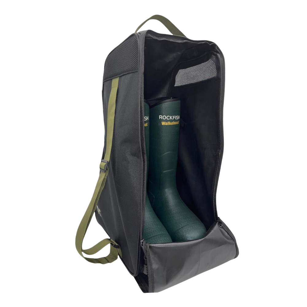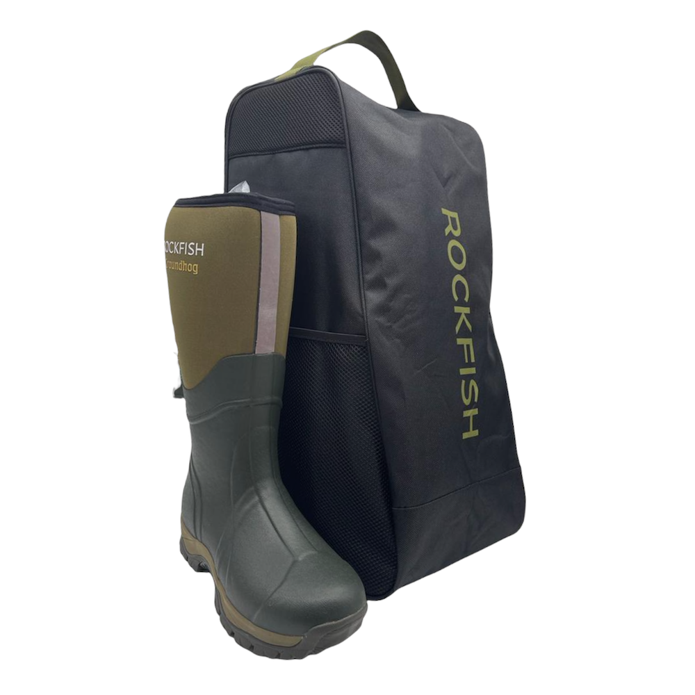 Large "no fuss" entry pocket, easy to load and remove your boots. Designed to carry any ROCKFISH boot. Grab handle to the top of the bag. Adjustable shoulder strap to the side of the bag. X2 ventilation outlets reducing the build up of moisture inside the bag. Large mesh side panel pocket, for the smaller things in your life. Internal board base, fabric covered. Double entry zip with pullers.