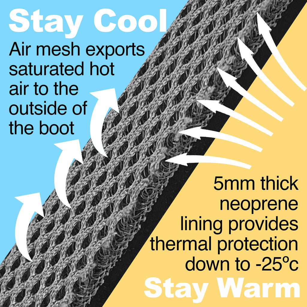 Stay warm in all conditions with 5mm thick neoprene lining.